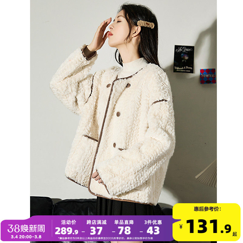 唐狮外套女冬季新款仿羊羔毛上衣早春爆款小香风毛毛外套短款秋冬
