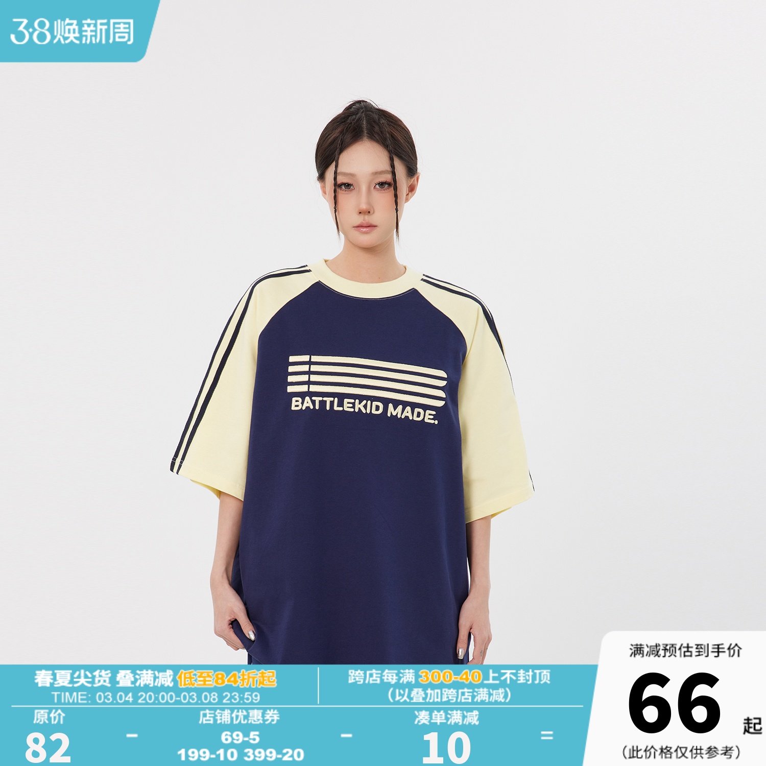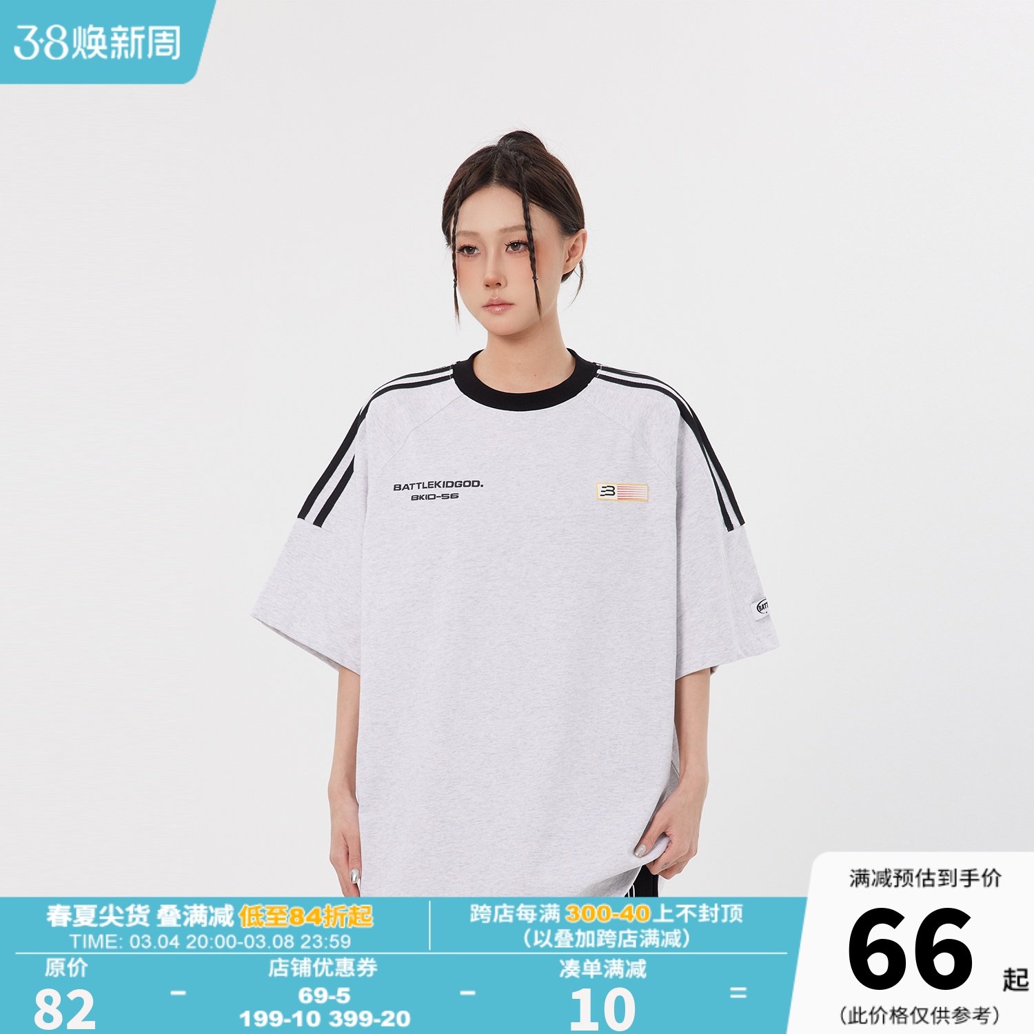 SREK 美式复古拼色条纹短袖T恤男女国潮宽松百搭情侣款半袖上衣
