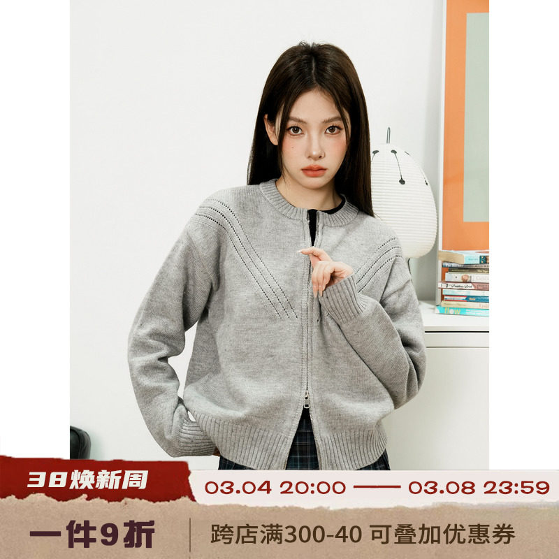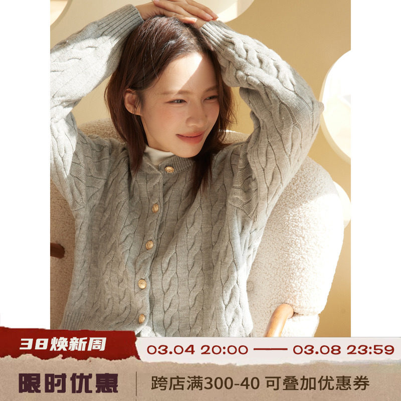 RPB BRAND春季新款纽扣绞花短款上衣经典百搭针织开衫外套毛衣女