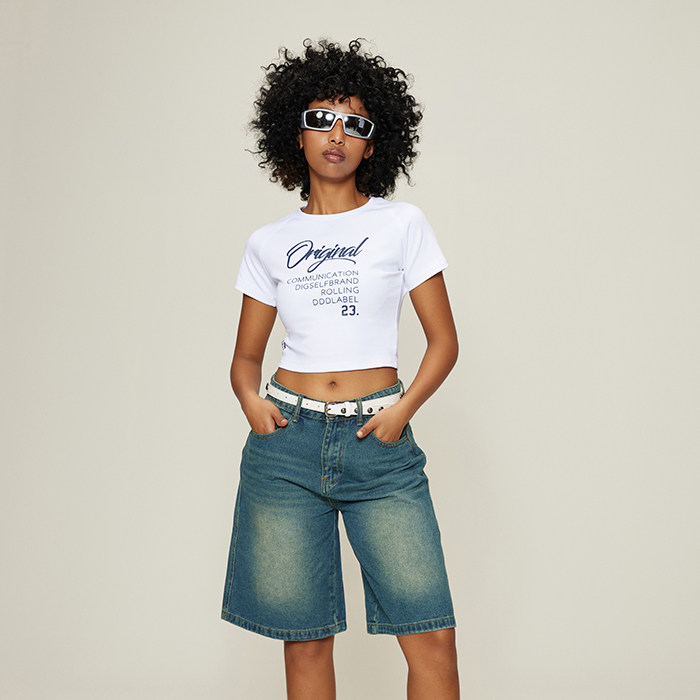 露脐短袖女夏短款t恤漏肚脐紧身纯棉高腰上衣半袖打底衫短装体恤