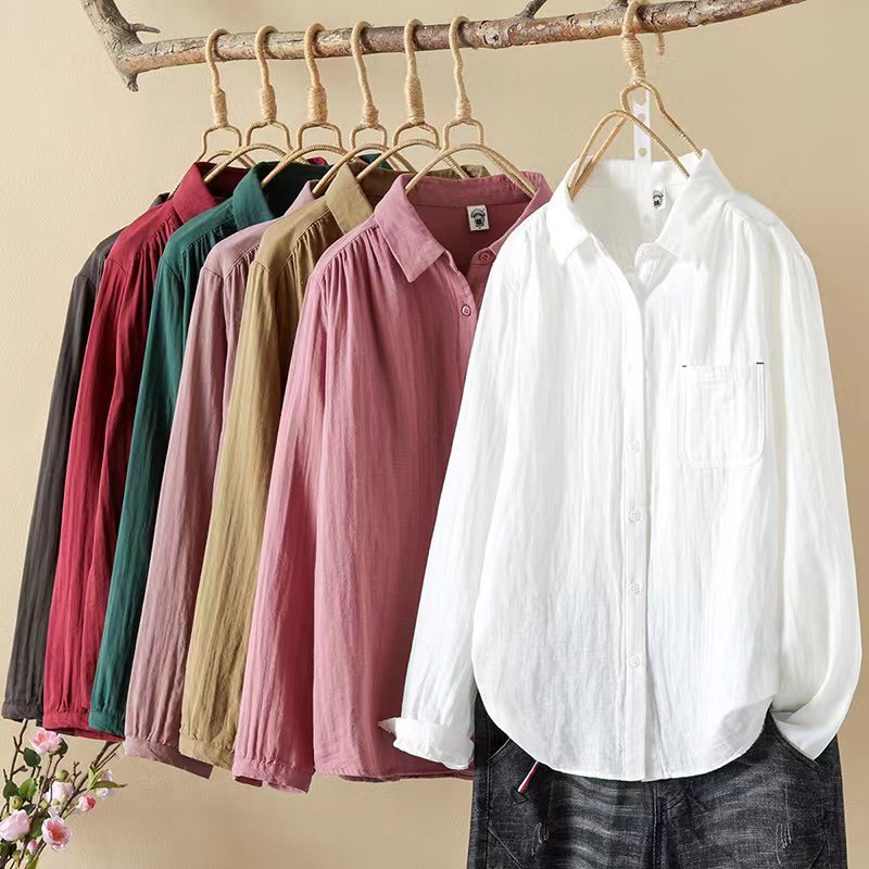 秋冬棉纱衬衫2023新款中年女百搭减龄上衣气质开衫衬衣纯色女8362
