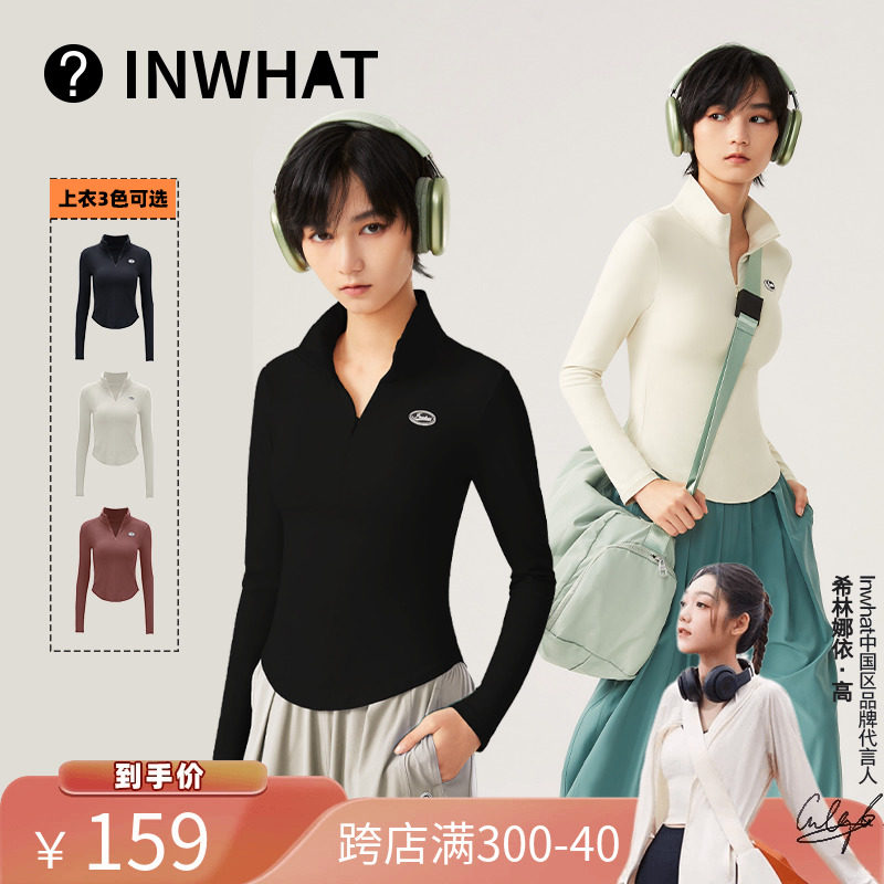 inwhat气质立领长袖上衣女半拉链休闲运动服显瘦健身服修身打底衫