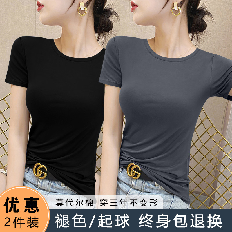 莫代尔短袖t恤女夏季修身薄款冰丝圆领打底内搭面膜上衣半袖体桖