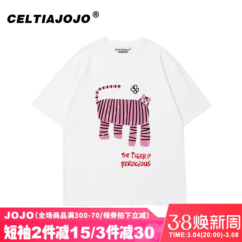 美式高街设计小众卡通印花短袖T恤女宽松甜酷情侣上衣夏季新款