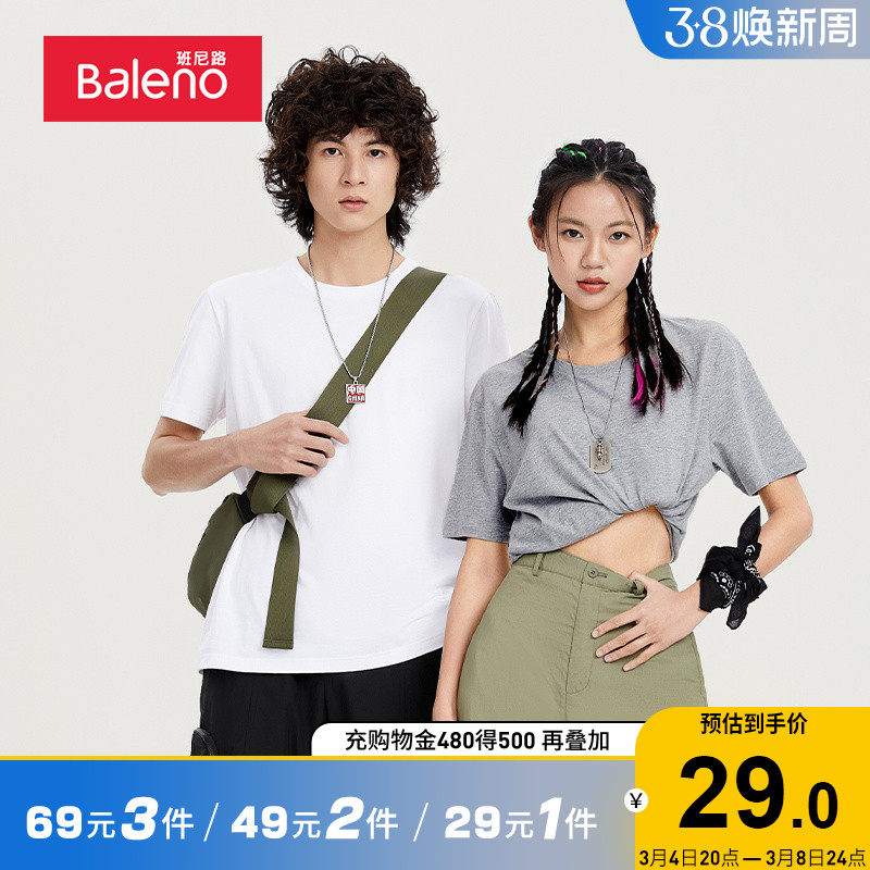 班尼路纯棉多巴胺短袖T恤薄款潮牌打底衫情侣中性短袖上衣