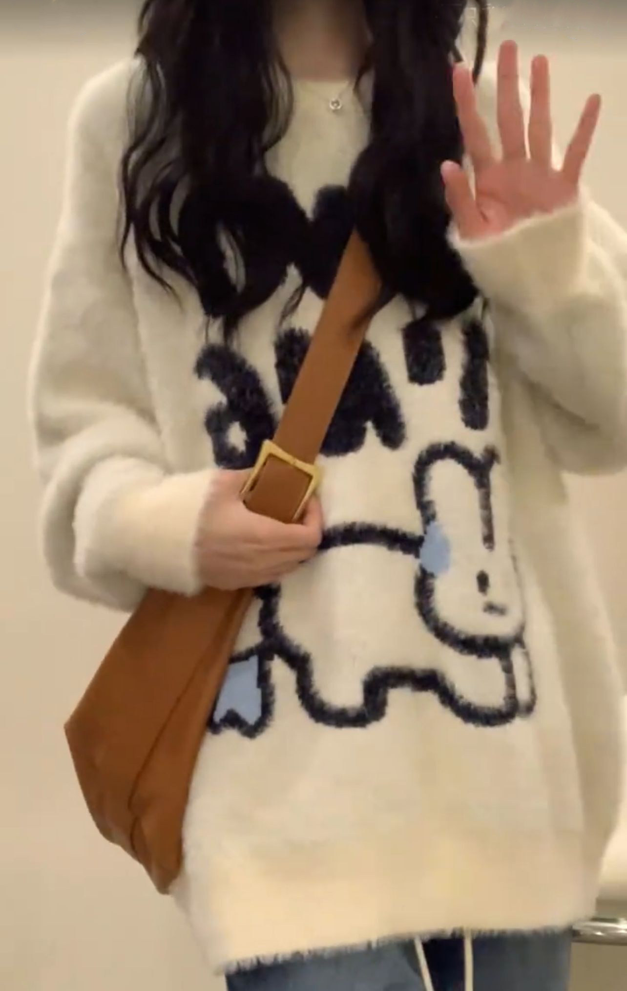 零碎岛屿美式国潮字母提花圆领海马毛情侣毛衣秋冬小众针织衫上衣