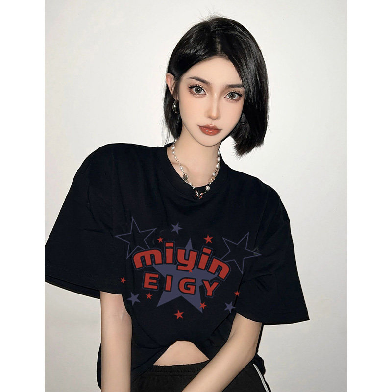 hiphop小众星星字母印花短袖T恤女ins简约风情侣上衣夏季新款
