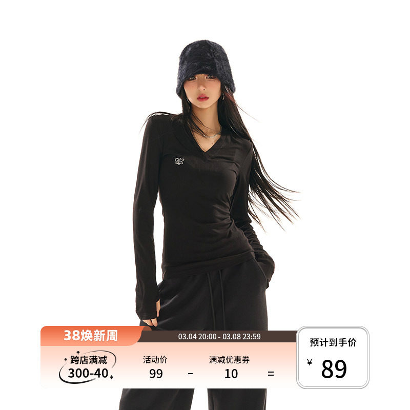 野生zerocircle白黑灰色长袖t恤女秋韩版宽松显瘦内搭打底v领上衣