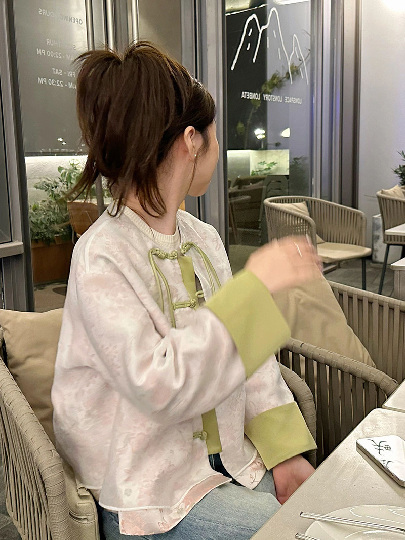 轻国风新中式撞色拼接盘扣外套女2024早春新款温柔气质高级感上衣