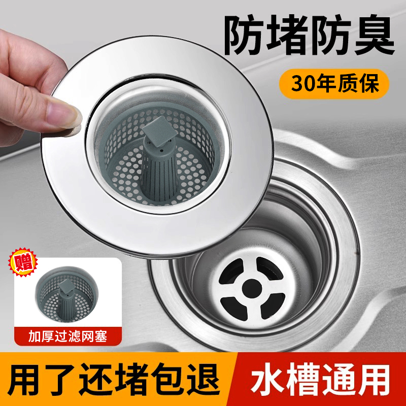 厨房洗菜盆漏水塞洗碗池水槽下水器塞子配件防臭弹跳芯过滤网神器