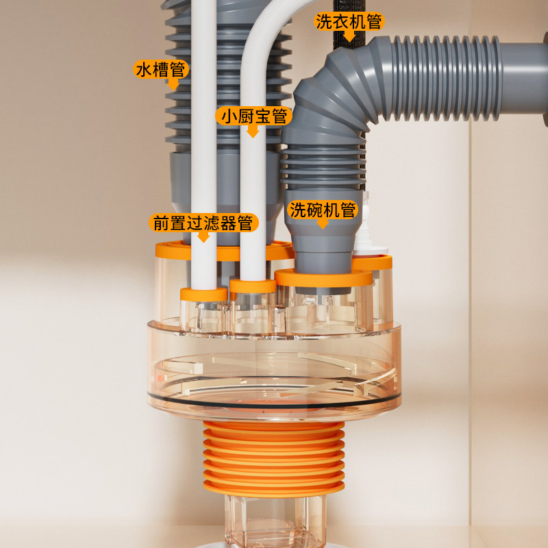 厨房下水管三头通集成防臭神器防返臭三通排水道接头多功能分水器