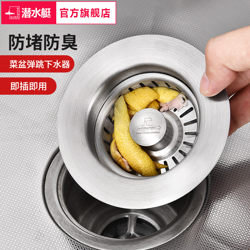 潜水艇洗菜盆漏水塞厨房洗碗池漏塞水槽塞子下水过滤器网弹跳芯