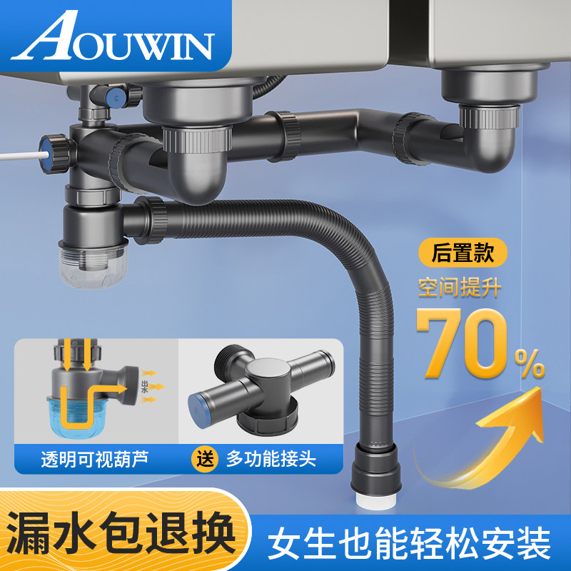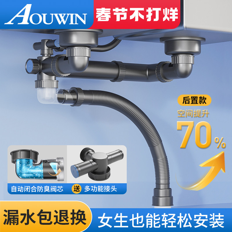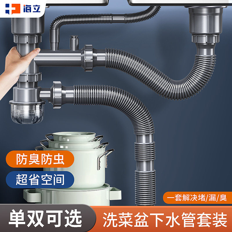 厨房洗菜盆下水管配件排水管不锈钢水槽下水器洗碗池双槽防臭套装