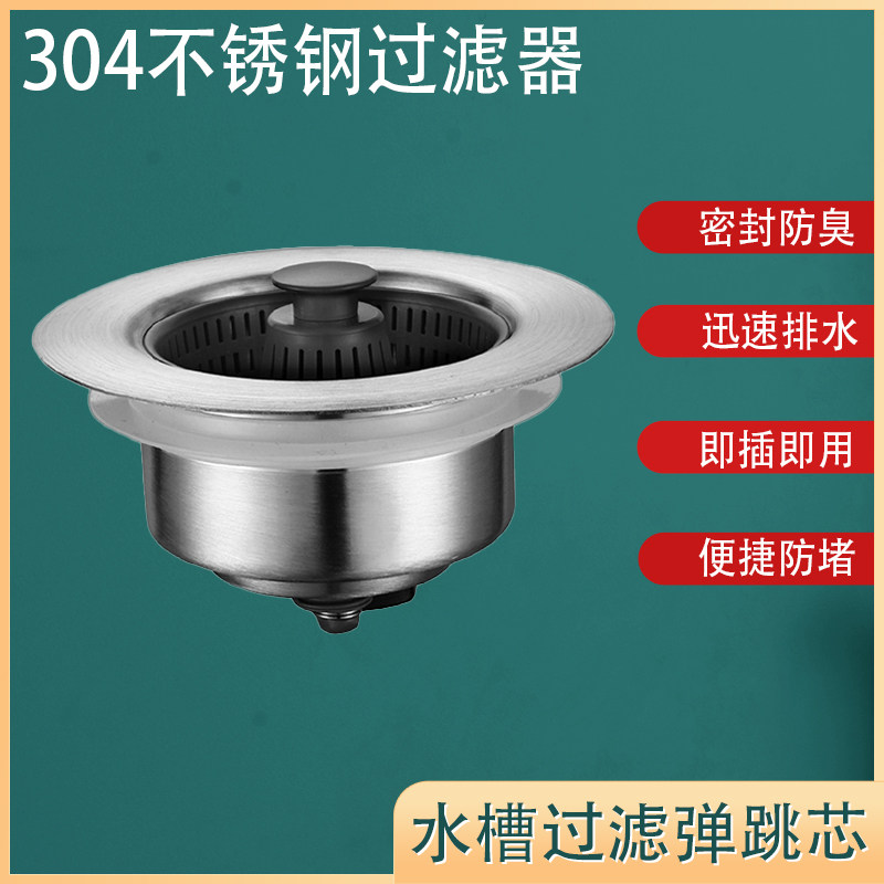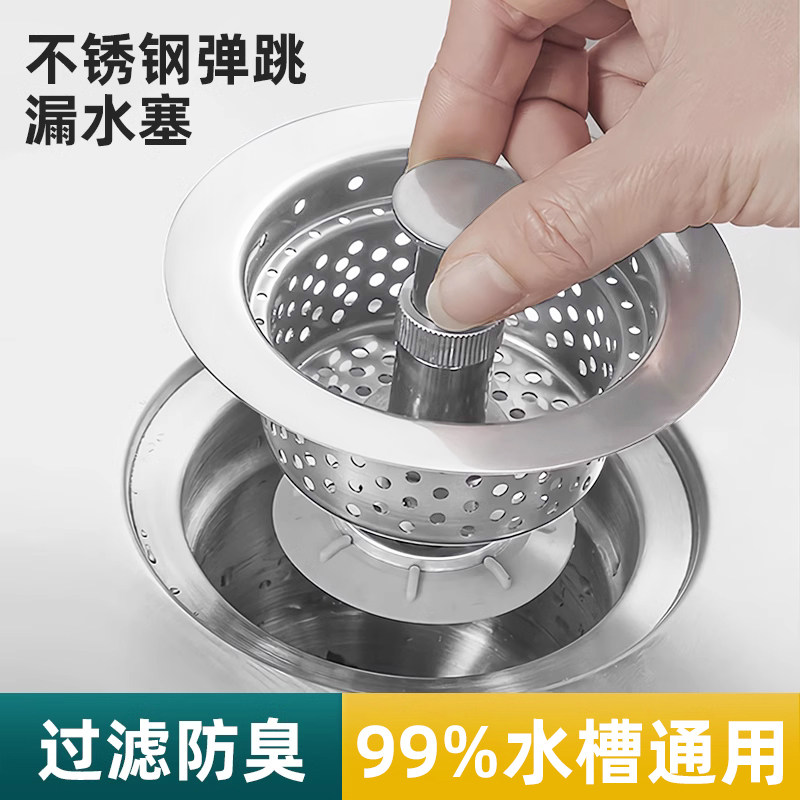 厨房水槽弹跳芯通用漏水塞下水器洗碗池洗菜盆过滤网不锈钢按压式