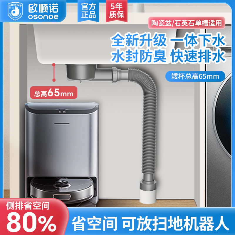 洗手盆灰色防臭下水管地排洗脸面盆下水器墙排水管通用配件省空间