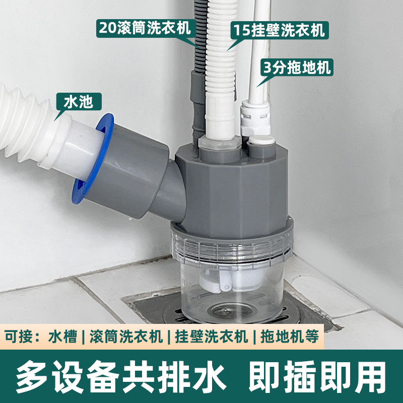 下水管三头通洗衣机排水管地漏接口对接器下水道三通二合一分水器