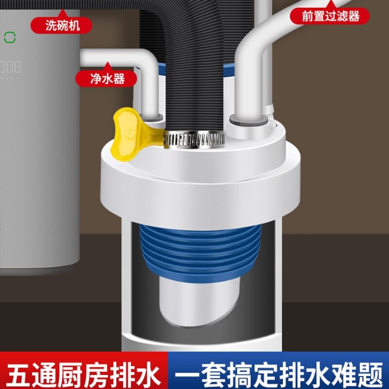 厨房洗菜盆下水管多功能集成下水神器洗碗机小厨宝净水器防臭三通