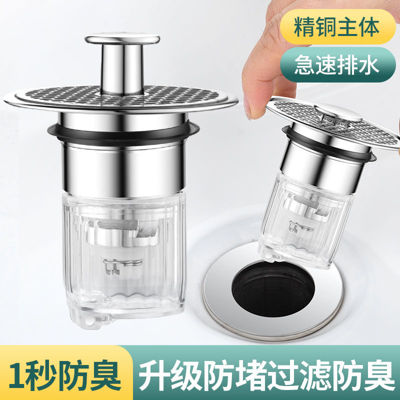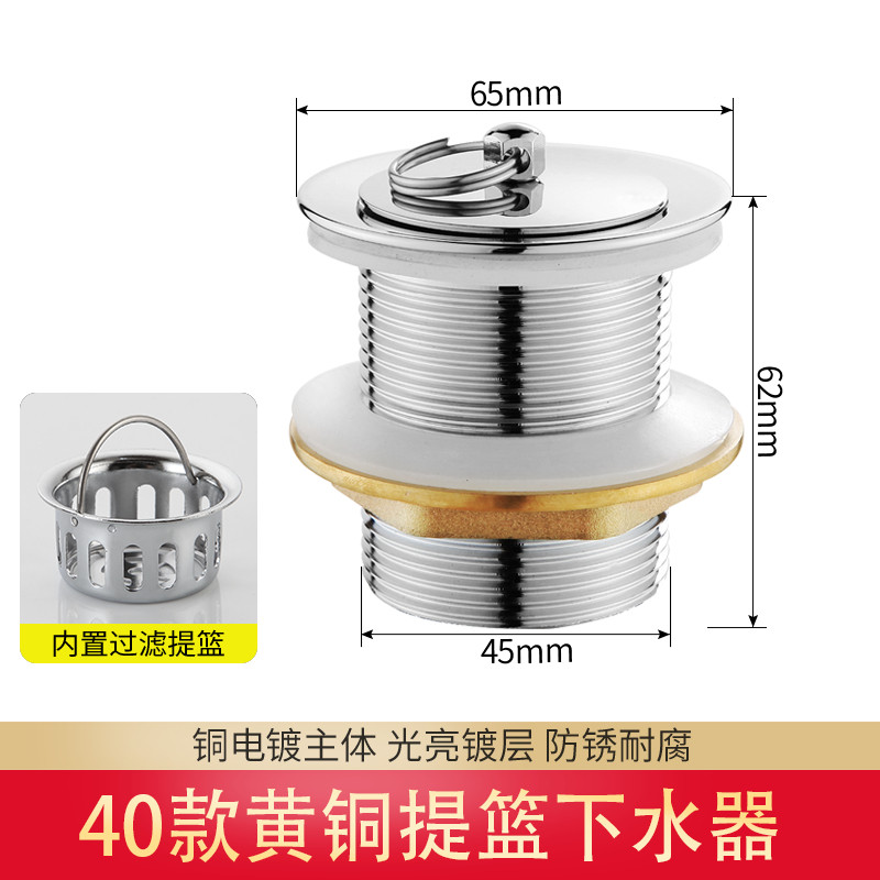 全铜主体下水器带提篮弹跳过滤网防臭下水管洗脸池台盆去水器落水