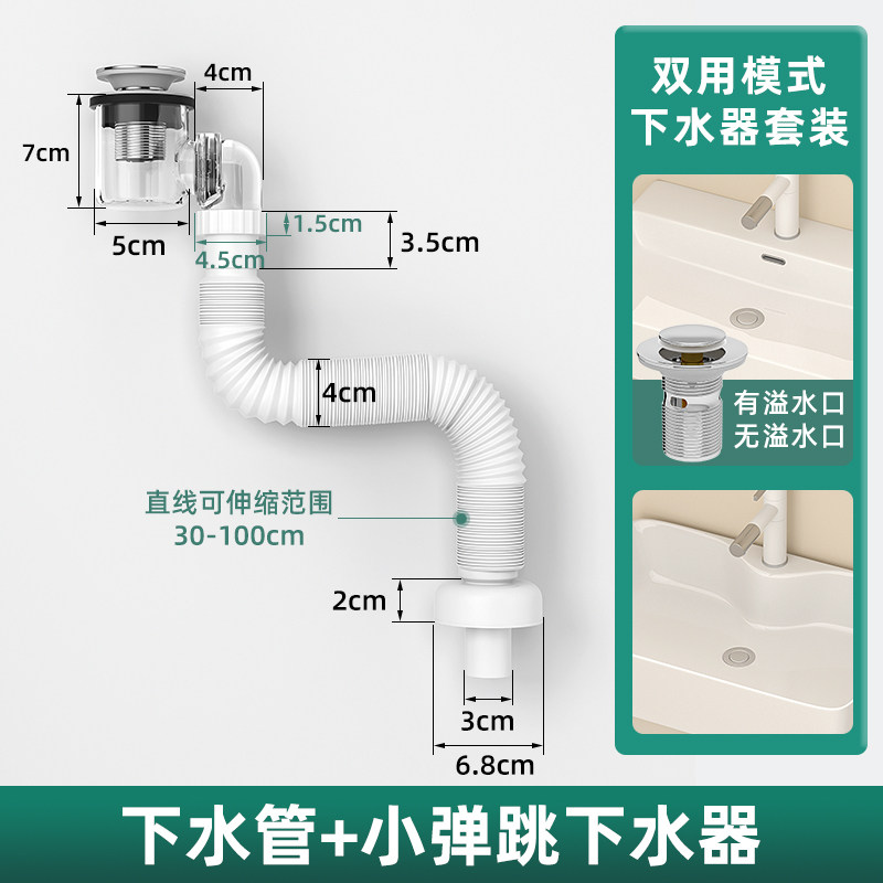 窄矮面盆下水器排水管套装台上盆薄盆防臭省空间弹跳芯下水器配件
