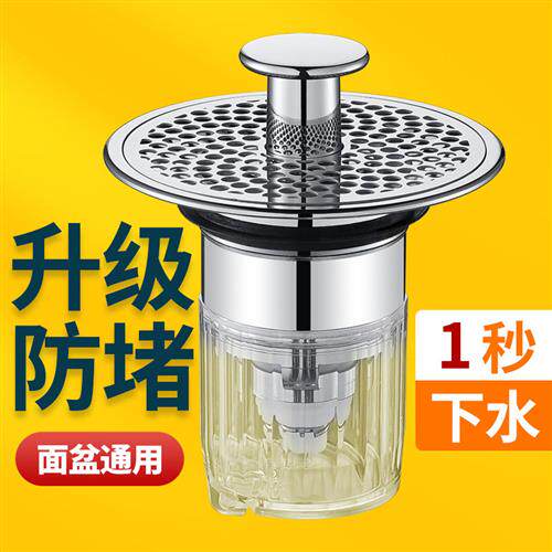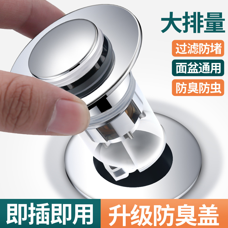 洗手盆脸池漏水塞子下水器管弹跳芯洗脸盆不锈钢按压式防臭塞配件