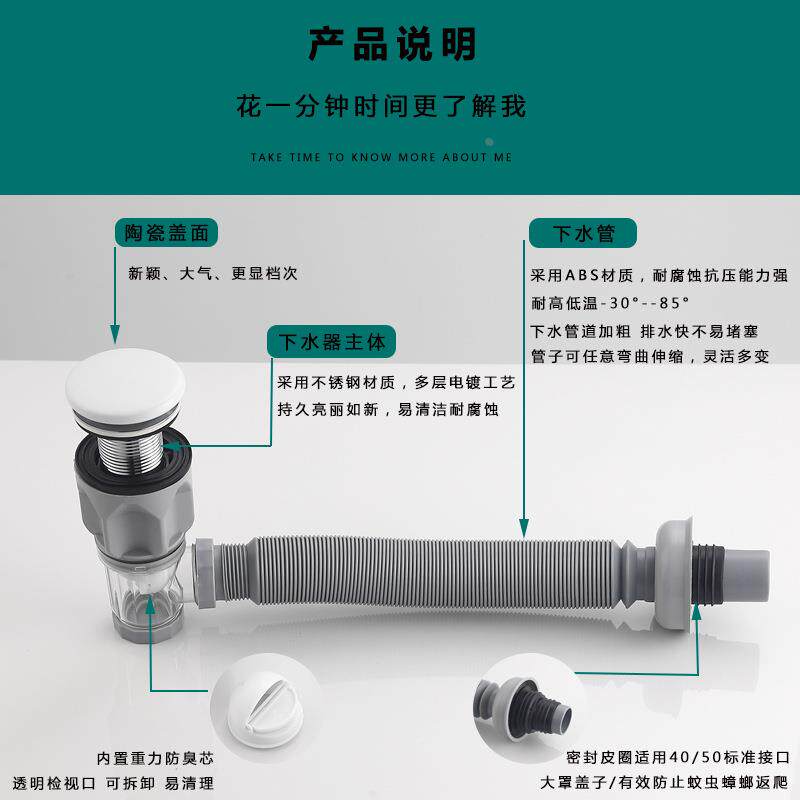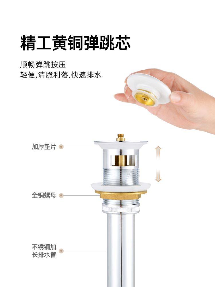 白色陶瓷弹跳下水器带铜提篮洗手盆洗面盆下水管按压式防堵防臭