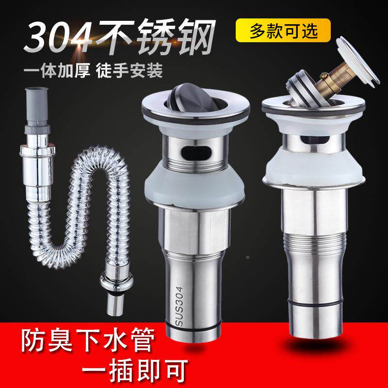 弹跳翻板下水器304不锈钢卫生间洗脸盆水龙头下水配件下水管 面盆