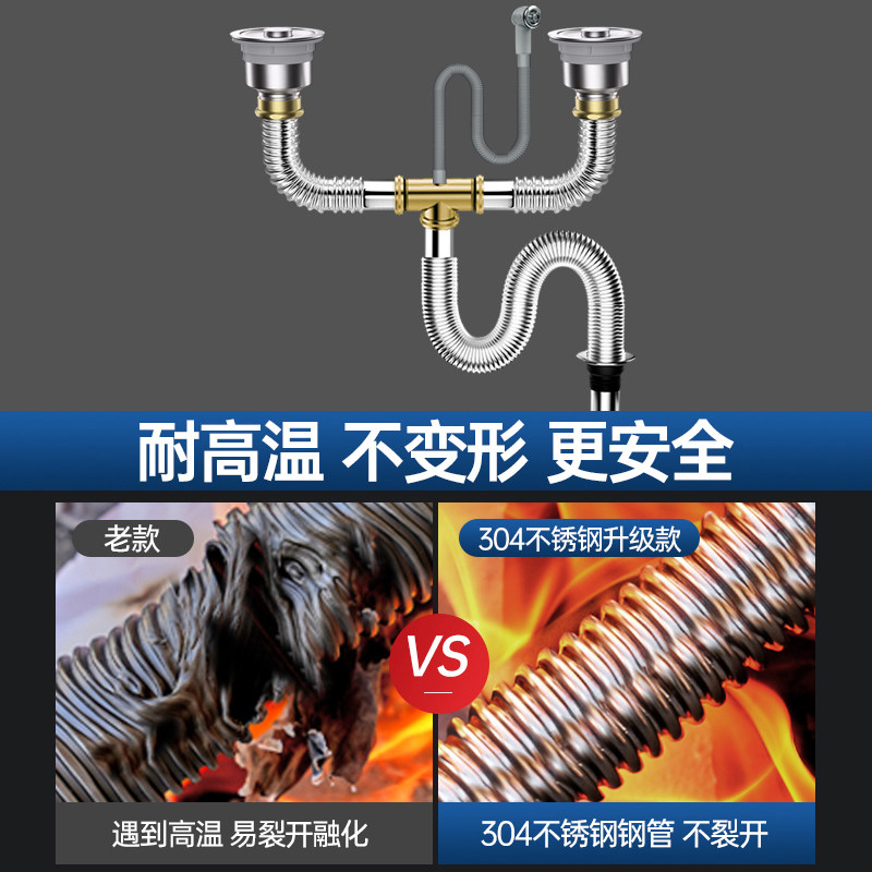 厨房不锈钢下水管洗菜盆配件双槽洗碗池水槽排水管防臭下水器套装