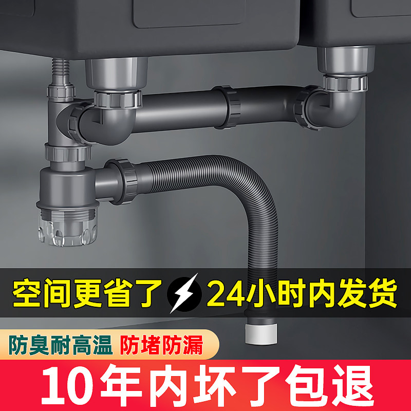 厨房洗菜盆双槽下水管配件洗碗池水槽排水管防臭下水神器套装家用