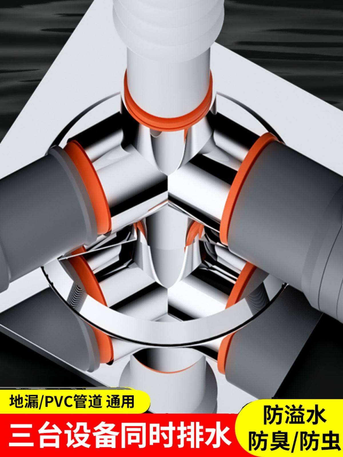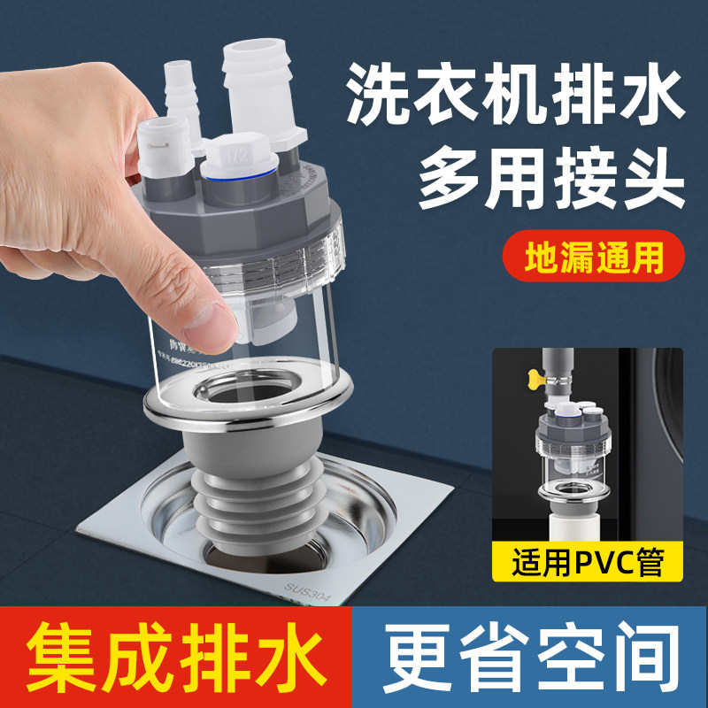 洗衣机下水管地漏接头三头通洗手盆烘干机防臭防溢水集成排水器