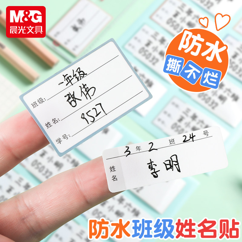 晨光姓名贴防水自粘便利贴小学生专用班级姓名贴手写防撕儿童宝宝名字贴纸不干胶保温杯书本可粘贴记号分类贴