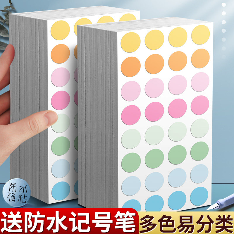 彩色圆形贴纸标签贴自粘不干胶标签纸可手写粘贴防水迷你记号贴杯子标记口取纸标识有粘性强不留胶分类圆点贴