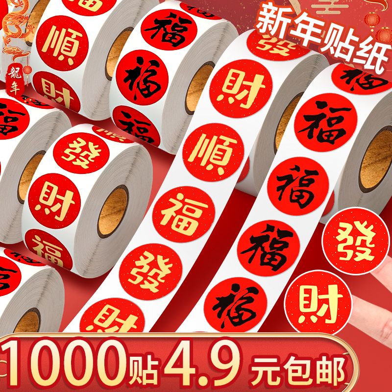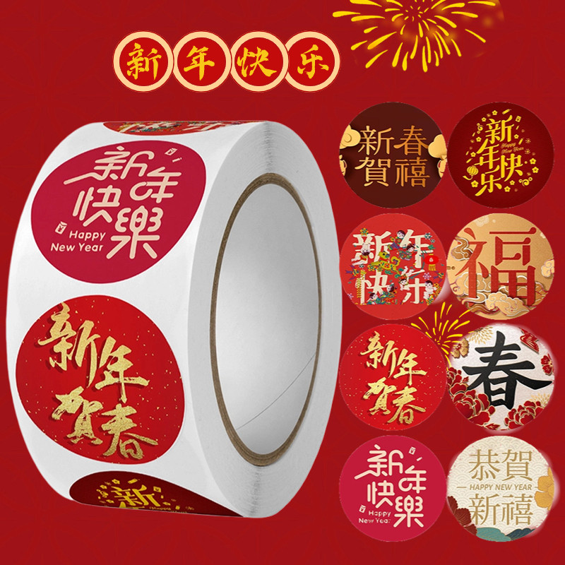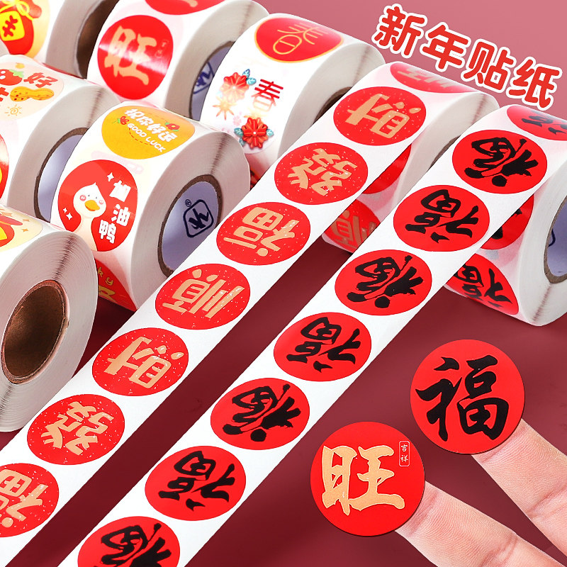 新年系列贴纸福字原创设计贴贴纸春节祝福吉祥手帐贴画装饰用不干胶封口贴过年礼品信封红包封口标签贴纸