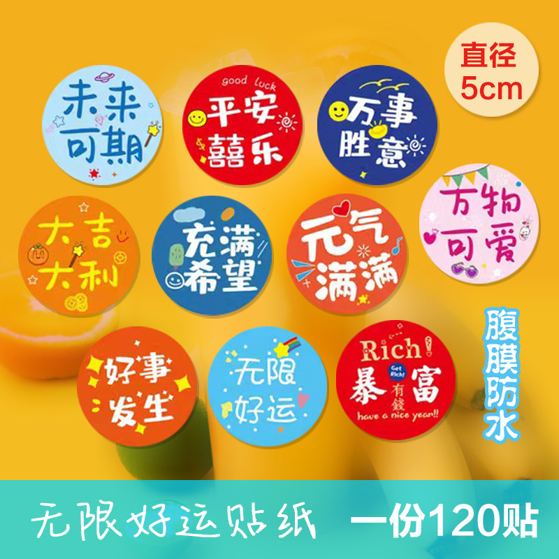 装饰贴纸祝福语标签贴纸健康平安喜乐好运红纸喜庆新年不干胶贴
