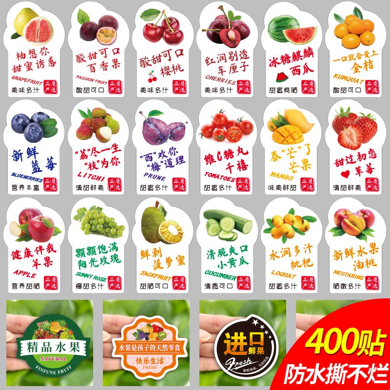 水果标签贴纸通用精品高档果标不干胶小标签纸水果店防水商标粘贴现切果切果蔬盒水果捞打包盒包装盒果贴定制