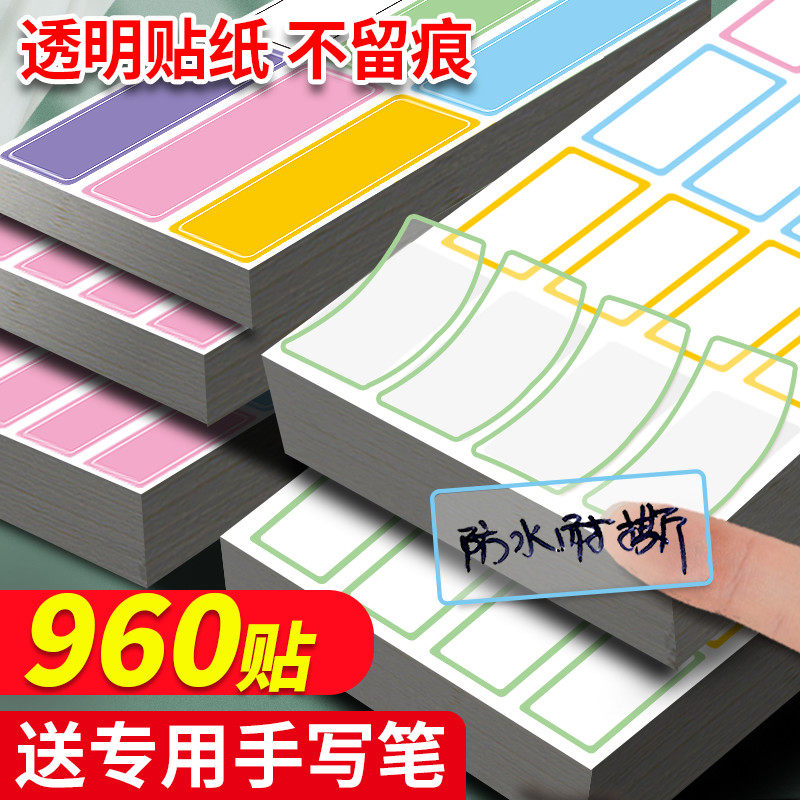 可定制透明姓名贴幼儿园小学生写名字用防水防撕名字贴自粘手写贴纸标签贴小签名书本杯子标记分类记号不干胶