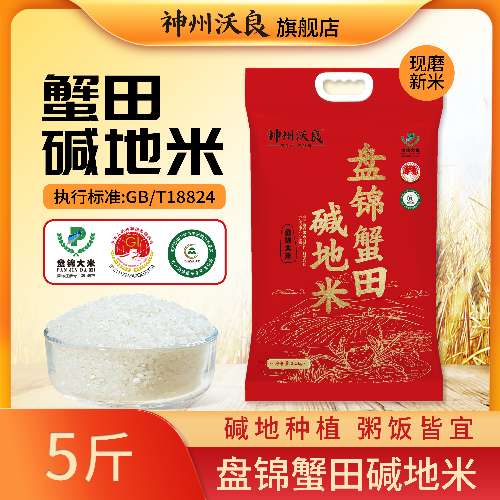 神州沃良盘锦蟹田碱地米真空2.5kg现磨新米东北大米5斤装软糯香甜