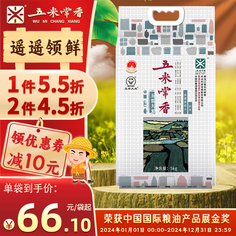 长粒香大米5斤正宗农家黑龙江东北五常香米新米真空包装粳米F