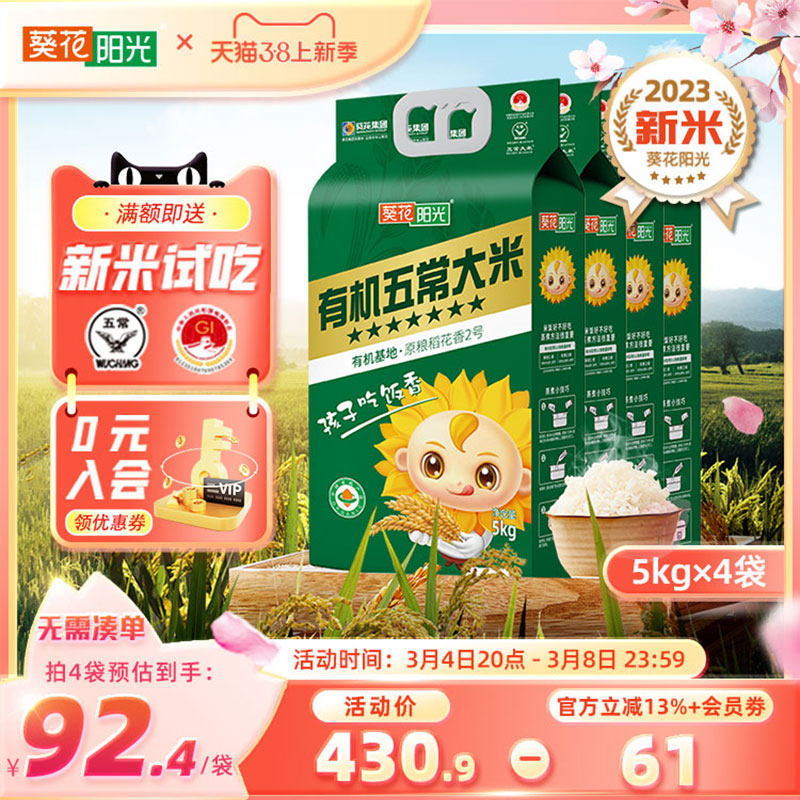 葵花阳光有机五常大米2023年新米5kg10斤东北大米GB/T19266