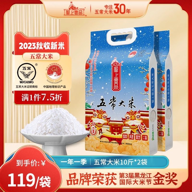 圣上壹品瑞雪东北五常大米5kg*2袋2023年新米黑龙江大米真空装