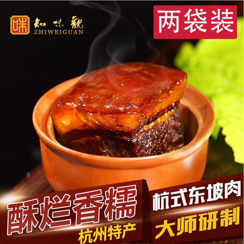知味观杭式东坡肉300*2袋 杭州特产卤味下酒菜 即食红烧肉类 熟食