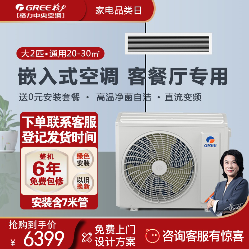 Gree格力中央空调家用客厅风管机一级3匹一拖一冷暖变频风静享