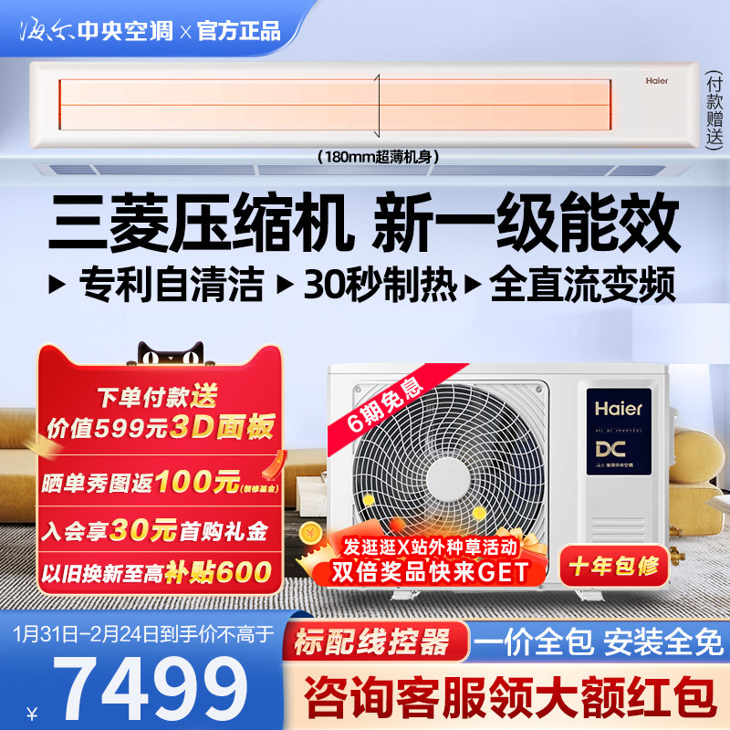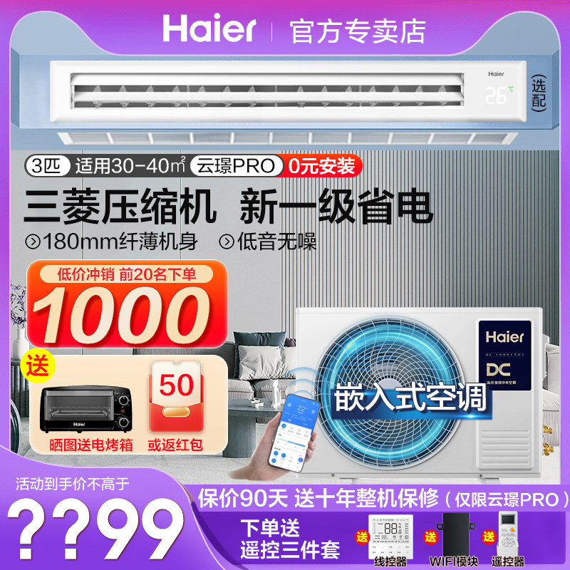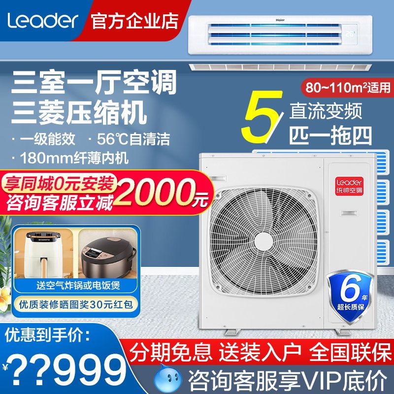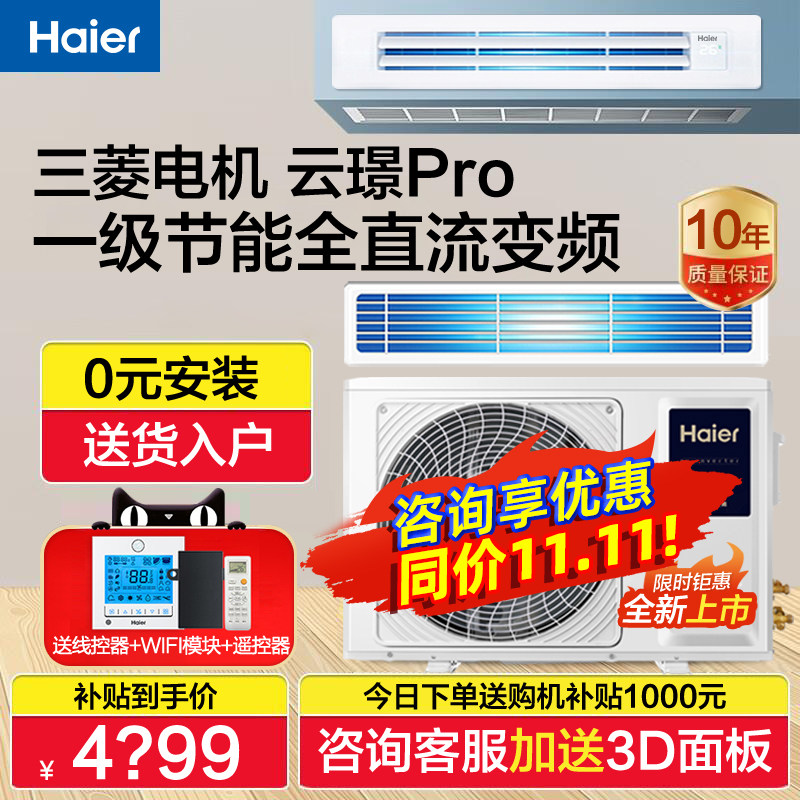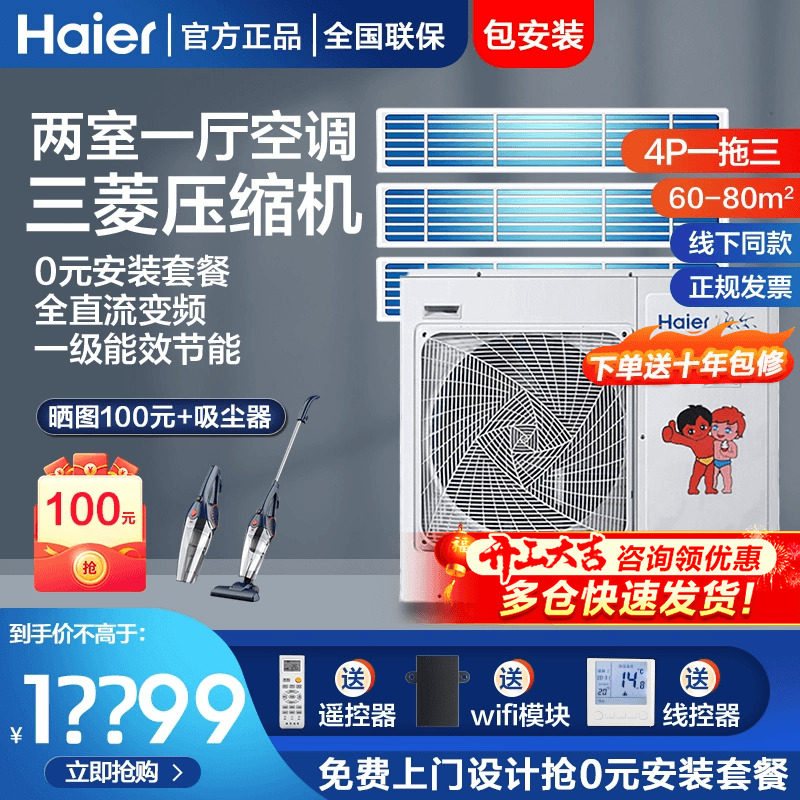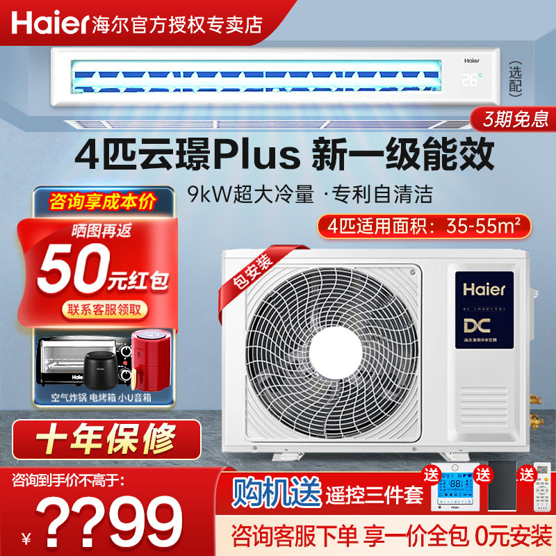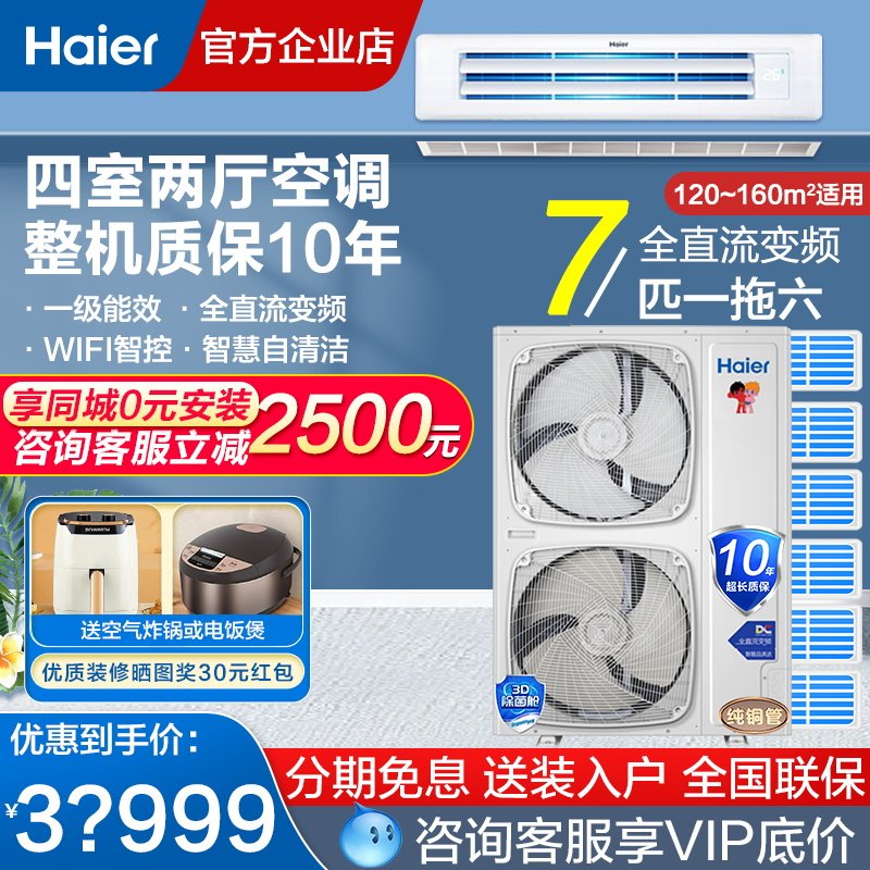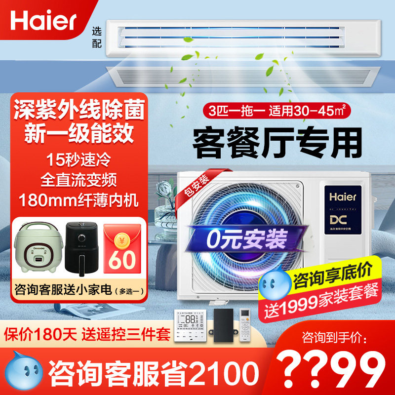 【0元安装】海尔风管机大3匹2p家用中央空调一拖一客餐厅变频云璟