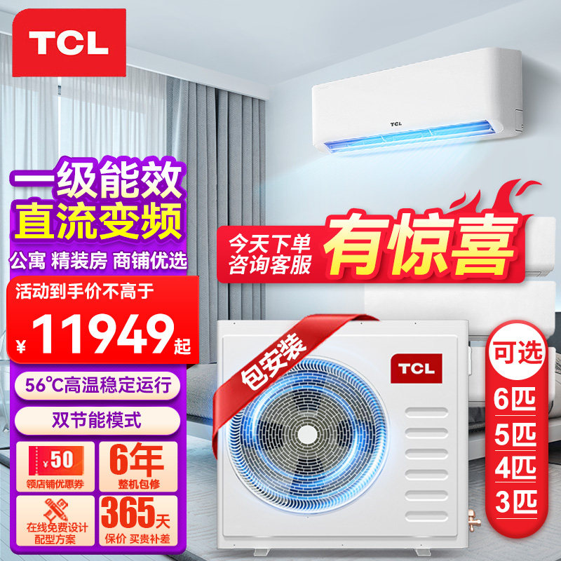 TCL中央空调4匹一拖二一拖三家用壁挂式变频多联机公寓精装房空调