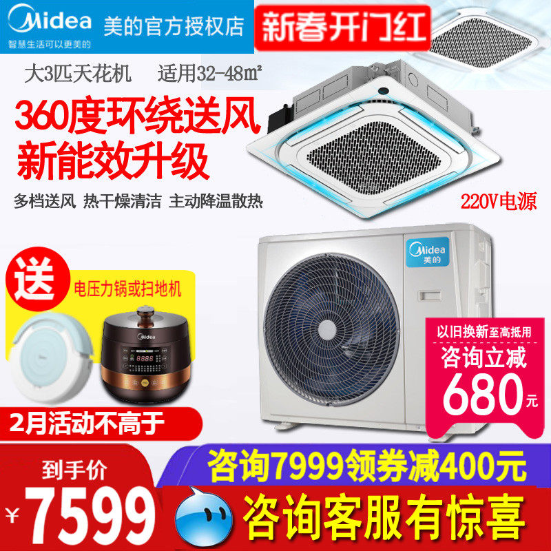 美的天花机3匹/5匹120QW一拖一吸顶天井机嵌入式中央空调商用72QW