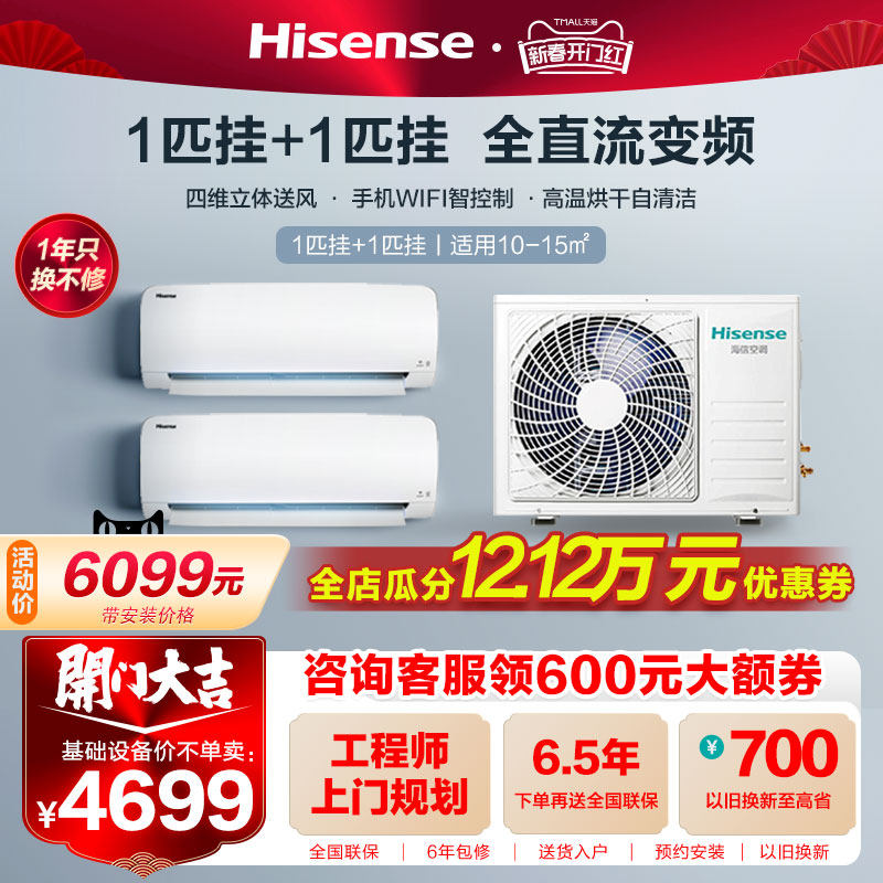 海信一拖二空调挂机1匹1.5匹2匹3匹p家用1拖2壁挂式变频中央空调