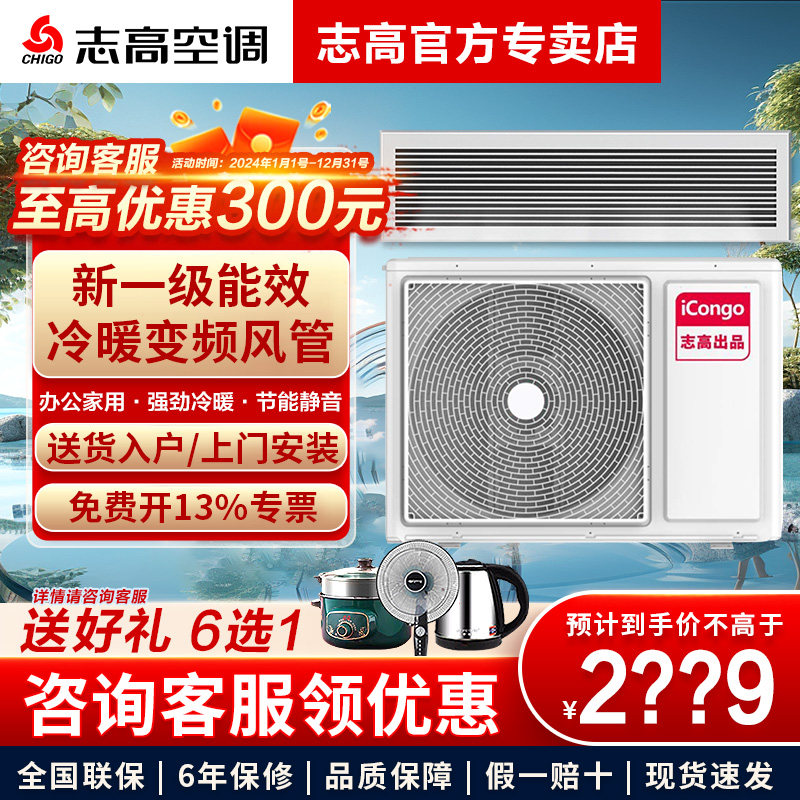 志高中央空调1.5p2/3匹风管机隐藏嵌入卡机一拖一冷暖定变频超薄