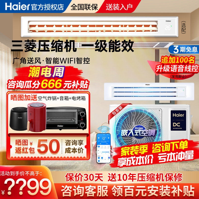 海尔大3匹风管机一拖一家用中央空调客厅全直流变频隐藏式变频星