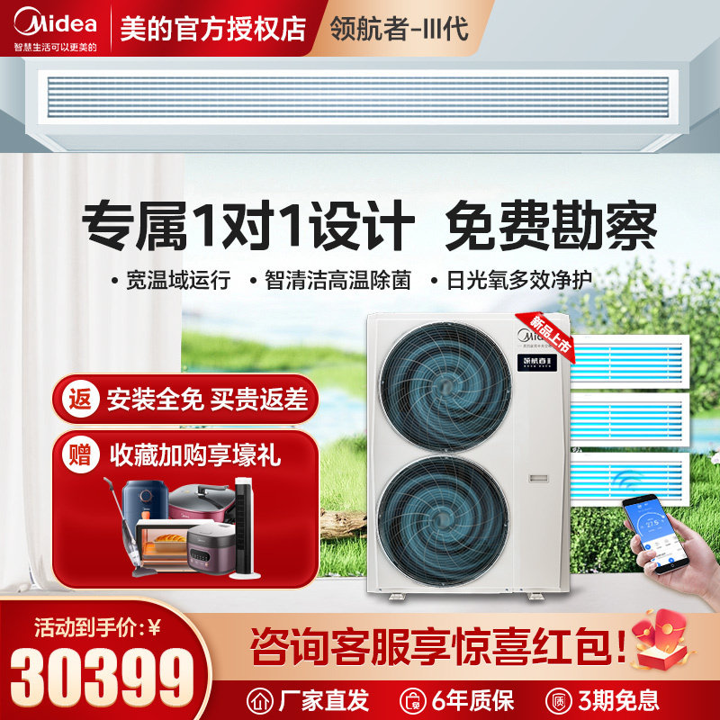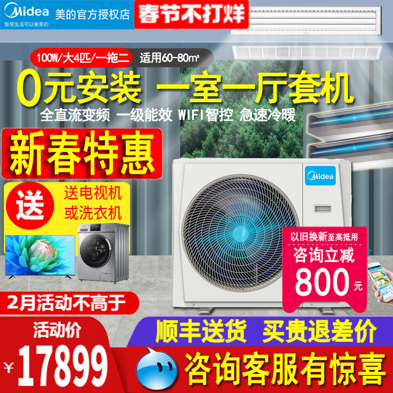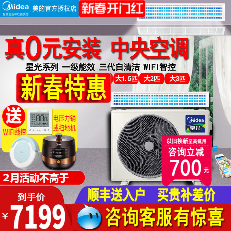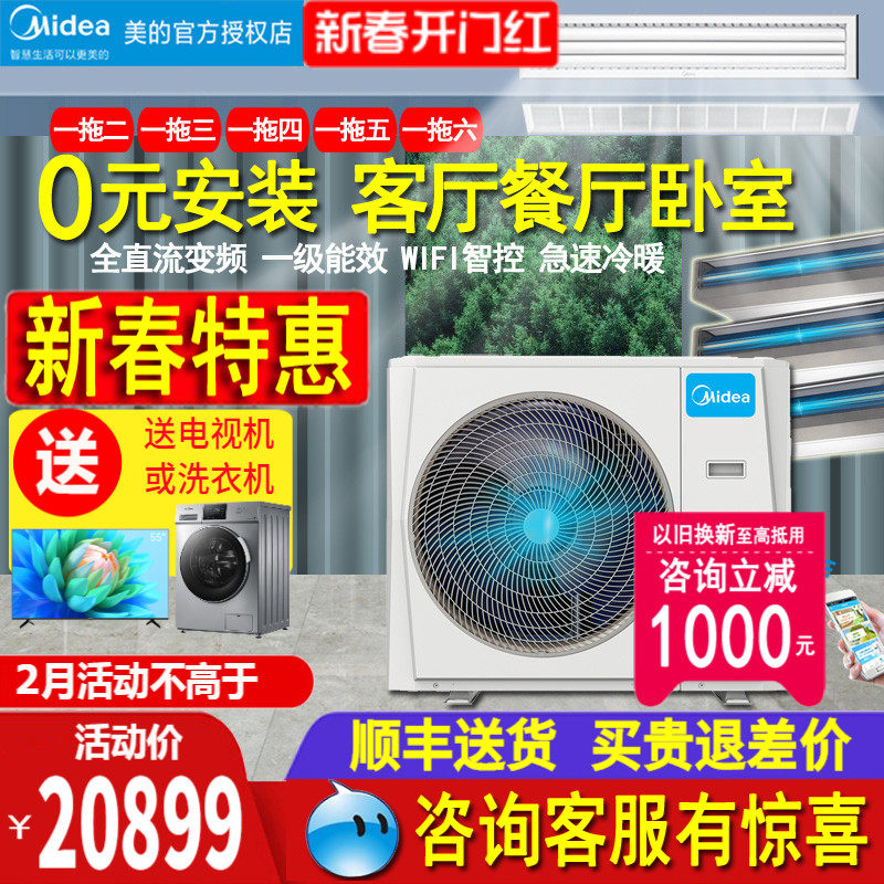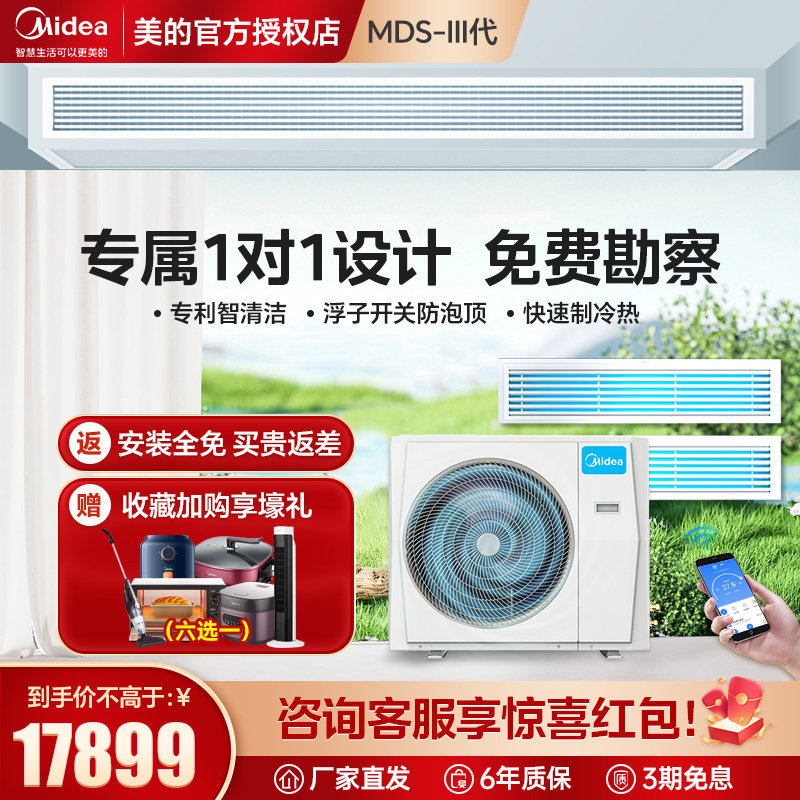 美的风管机一拖一中央空调家用大3匹5匹客餐厅变频隐藏星光科技