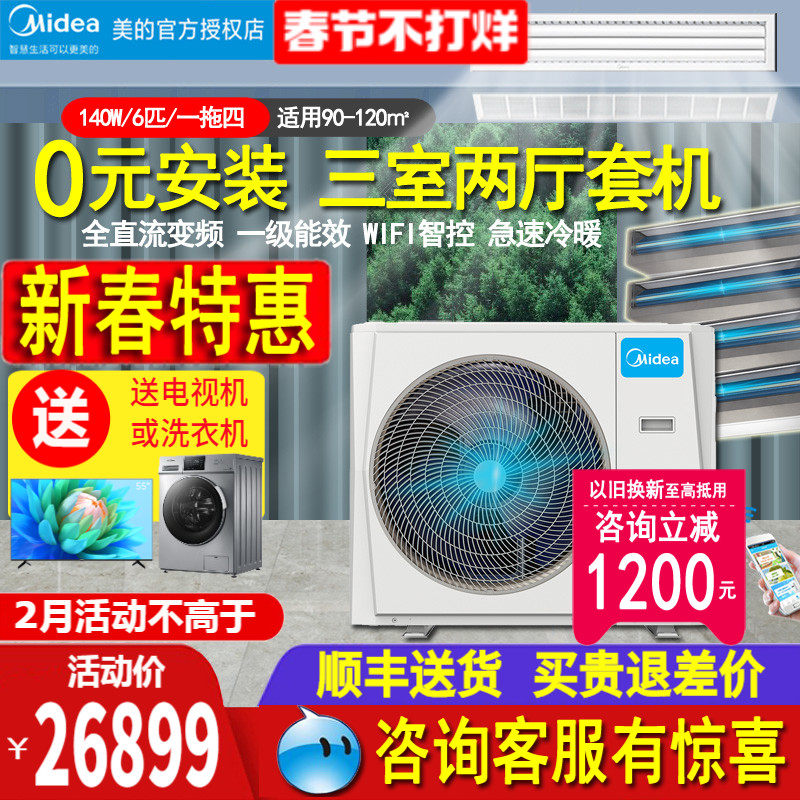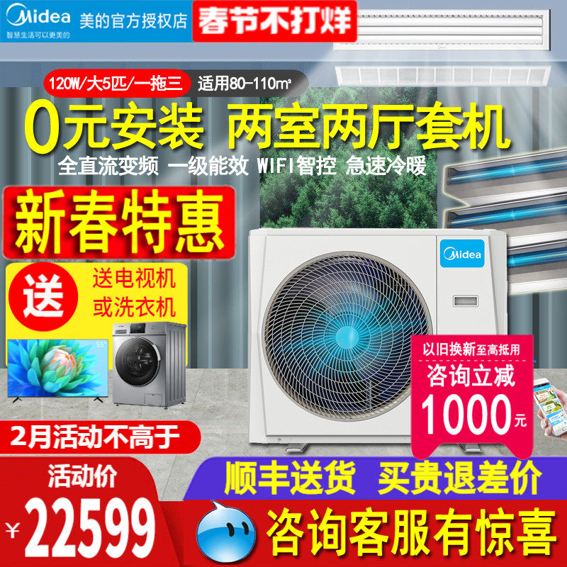 美的中央空调5匹6P一拖四五多联风管机120W三室二厅4P智能变频MDS