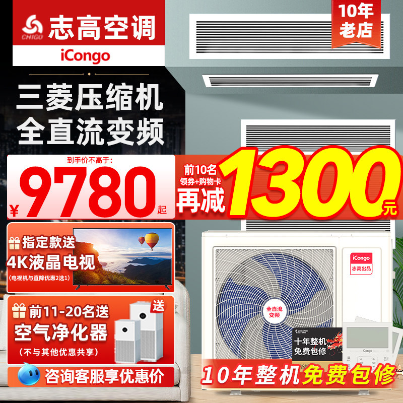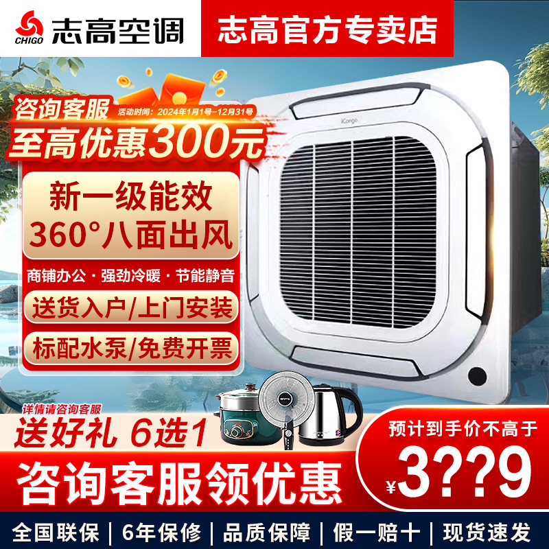志高中央空调大3/5匹2p冷暖定频商用家节能静音天花机隐藏嵌入式